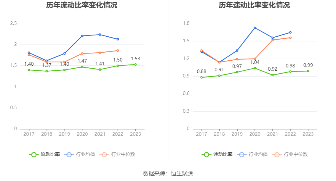 2023年,公司流动比率为1.53,速动比率为0.99。
