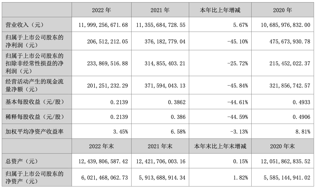 2022 年营收 120 亿,同比增长 5.67%;净利润 2.07 亿;同比减少 45.1%。