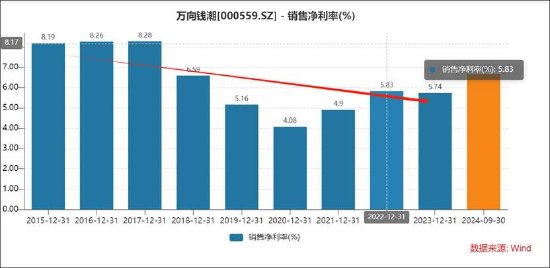 值得注意的是,我们发现,万向钱潮的有息负债由2019年的16.71亿元飙升至2023年的47.17亿元,截止2024年三季报末,公司的有息债务规模超50亿元。需要指出的是,公司营收等规模扩大或利于上市公司融资。根据公开资料显示,由于主体评级高、拥有更充分的信息、以及更容易找到信用增级和担保机构,100亿以上大企业信用债融资的平均成本仅为4.75%,低于传统银行贷款的平均融资平均成本(后者约为6.6%),5亿以下上市公司发行的信用债平均融资成本为6.70%,融资成本显著高于规模较大的企业。