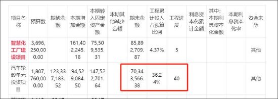 以汽车轮毂单元投资项目为例,2016年年报显示,该项目工程预算为18.08亿元,当年工程累计投入为36.24%,工程进度为40%;2017年,该项目工程预算被大幅调整至25.22亿元。