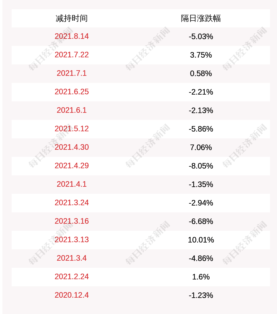 3.焦作万方上次发布减持公告是2021年08月14日,第二个交易日下跌5.03%,焦作万方近一年共发布16次减持类公告。更多关键信息,请搜索“道达号”。