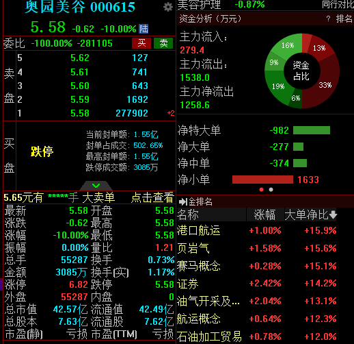 4月17日,奥园美谷(000615.SZ)开盘跌停,截至上午11时,封单量超27万手,封单金额超1.5亿元。