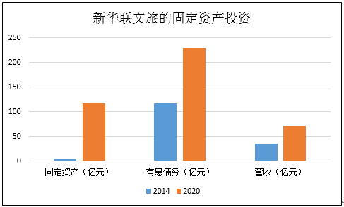 集团公司给予的流动性支持没有了,新华联文旅的债务危机只能依靠自己,而其自身因为近年来持续砸钱文旅业务,固定资产自2014年的4.12亿,5年间就飙升至2019年的120.84亿元,增长了近30倍,债务也水涨船高。而应收则仅仅从35亿升高至70.84亿元。