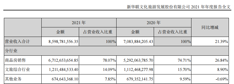 文旅综合行业方面,叠加疫情影响,新华联旗下景区营业活动受到限制,游客接待量及经营业绩出现波动,2021年实现营收12.11亿元,占比14.09%,较2020年的15.7%略有下降;毛利率为-27.50%。
