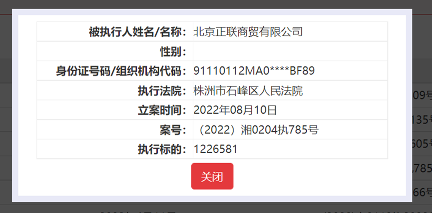 据中国执行信息公开网显示,近日,北京正联商贸有限公司成为被执行人,案号为(2022)湘0204执785号,立案时间为2022年08月10日,执行法院为株洲市石峰区人民法院,执行标的为1226581元。