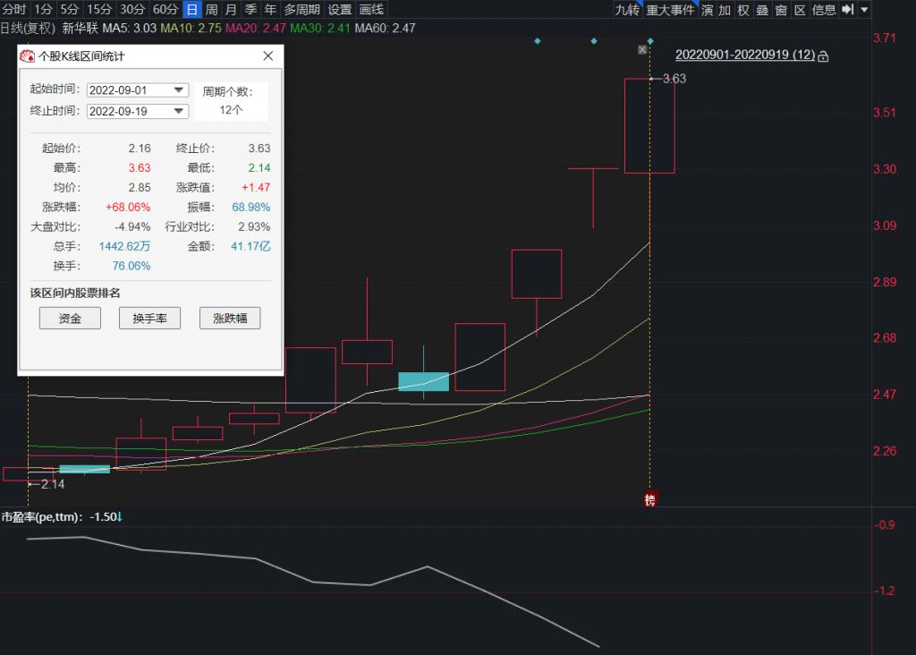 如果将统计区间拉长,9 月初以来的股价表现用"旱地拔葱"形容,相信一点也不为过。根据同花顺 iFind 的统计,截至 9 月 19 日收盘,新华联 9 月涨幅为 68.06%,其中有四个交易日是连续收于涨停。