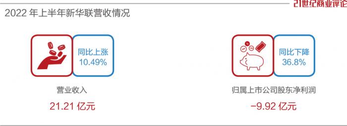 事实上,自2020年开始,新华联就陷入亏损泥潭,两年半时间,累计亏损超过60亿元。2020年和2021年,新华联分别亏损12.86亿元、38.93 亿元。