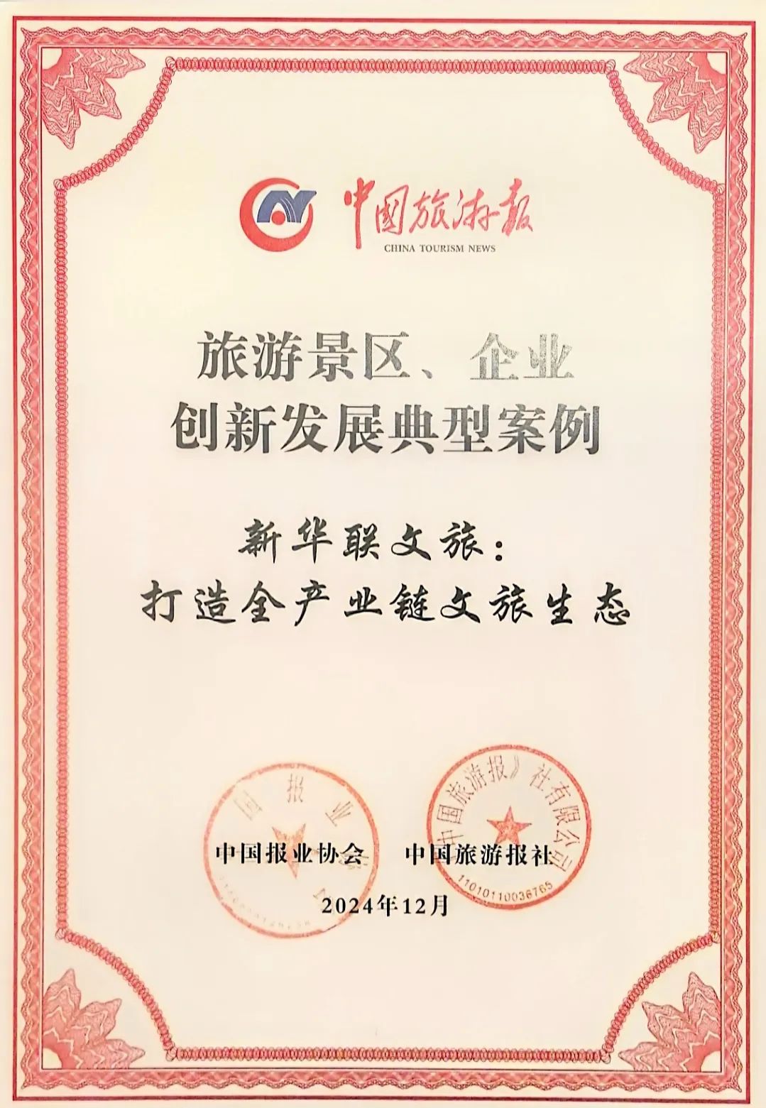 年会现场,主办方不仅组织了“全面深化改革,推动旅游强国建设”“乡村旅游与康养旅居”两场交流活动,还现场揭晓了“2024旅游产业影响力案例”。新华联文旅凭借多年深耕文旅产业,打造全产业链文旅生态,成功入选“旅游景区、企业创新发展典型案例”。