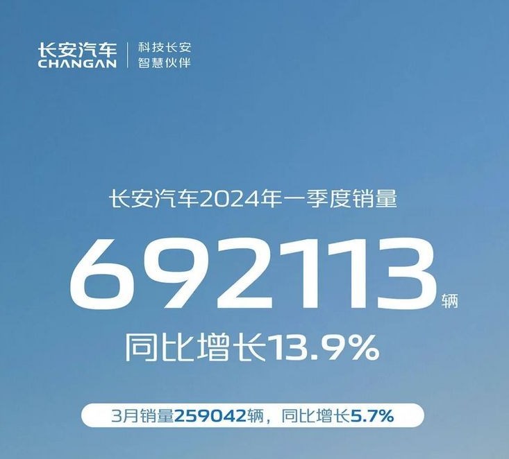 4月8日,买车网Buycar获悉,根据长安汽车发布的数据显示,2024年第一季度长安汽车售出新车69.2万辆,同比增长13.9%。其中,3月销量为25.9万辆,同比增长5.7%。