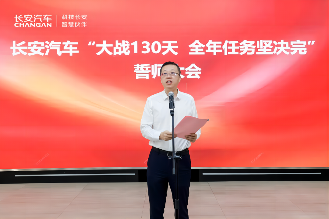 2024年8月21日,长安汽车在两江工厂二厂区总装车间召开以“大战130天,全年任务坚决完”为主题的誓师大会。公司董事长、党委书记朱华荣领誓并讲话。公司总裁、党委副书记王俊主持并发布“大战130天,全年任务坚决完”总体方案。全体在家公司领导、渝内各部门负责人、各二级党委书记、副书记、宣誓代表共120余人出席。