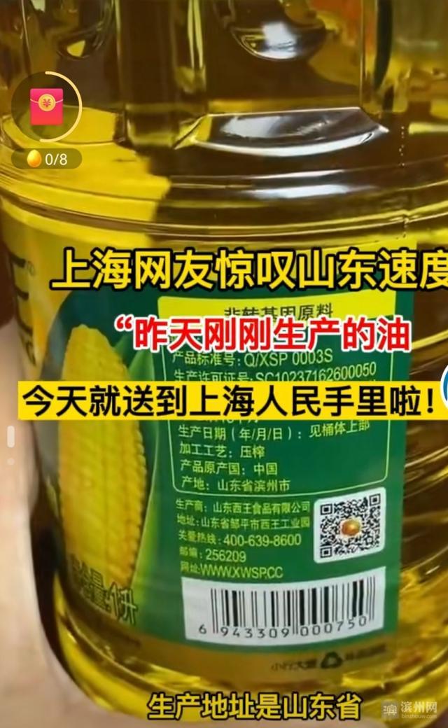 近日,网上一段西王玉米胚芽油驰援上海保供疫情防控的视频被广泛传播。4月17日一位上海网友在抖音发布视频,“生产日期为2022年4月16日的西王玉米胚芽油,仅用一天时间就送到上海人民手里,非常快。”