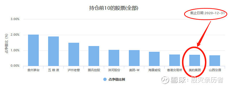 我可以看见,到2020年底时,美的集团依然是易方达的前十大重仓股票之一,而格力电器却被剔出了前十大重仓股票名单。