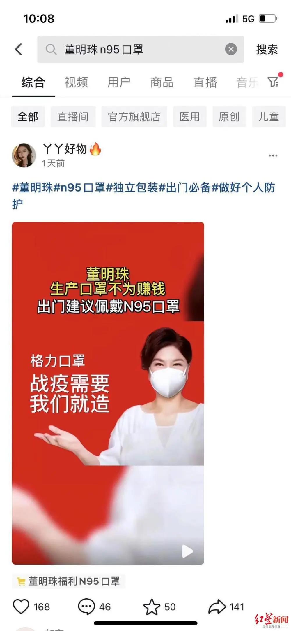 但在抖音平台上,董明珠关于格力生产口罩的发言被一些抖音用户盗用,做成口罩推广视频,卖其他厂家生产的口罩。形式一般是视频底下放上商品链接,并命名为“董明珠推荐福利口罩”“视频同款N95口罩”等。