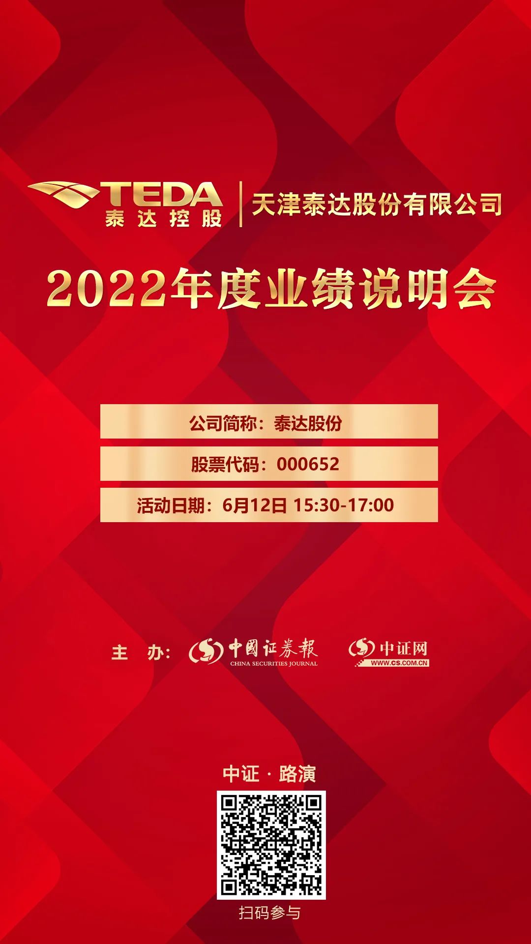 泰达股份2022年度业绩说明会6月12日在中证网举行