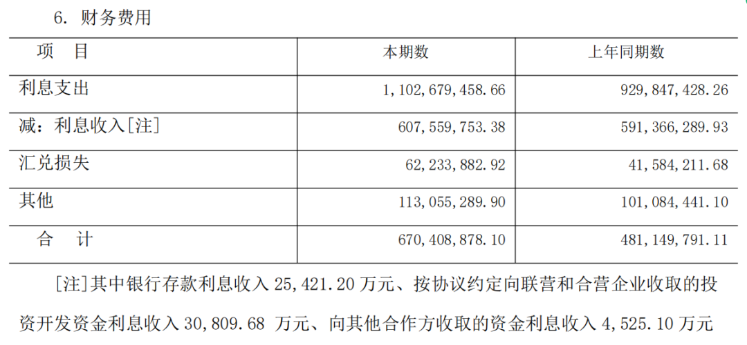 我们都知道,财务费用主要是以“利息支出”、“汇兑损失”和“手续费及其他”组成。「子弹财观」从金科股份的2021年报中发现,财务费用中的其他费用占比最大,但同比变化不大,而汇兑损失同比变化虽大,但因基数相对较小,故而二者对整体财务费用的影响并不大。剩下的利息收支就成了影响金科股份财务费用的最主要因素。