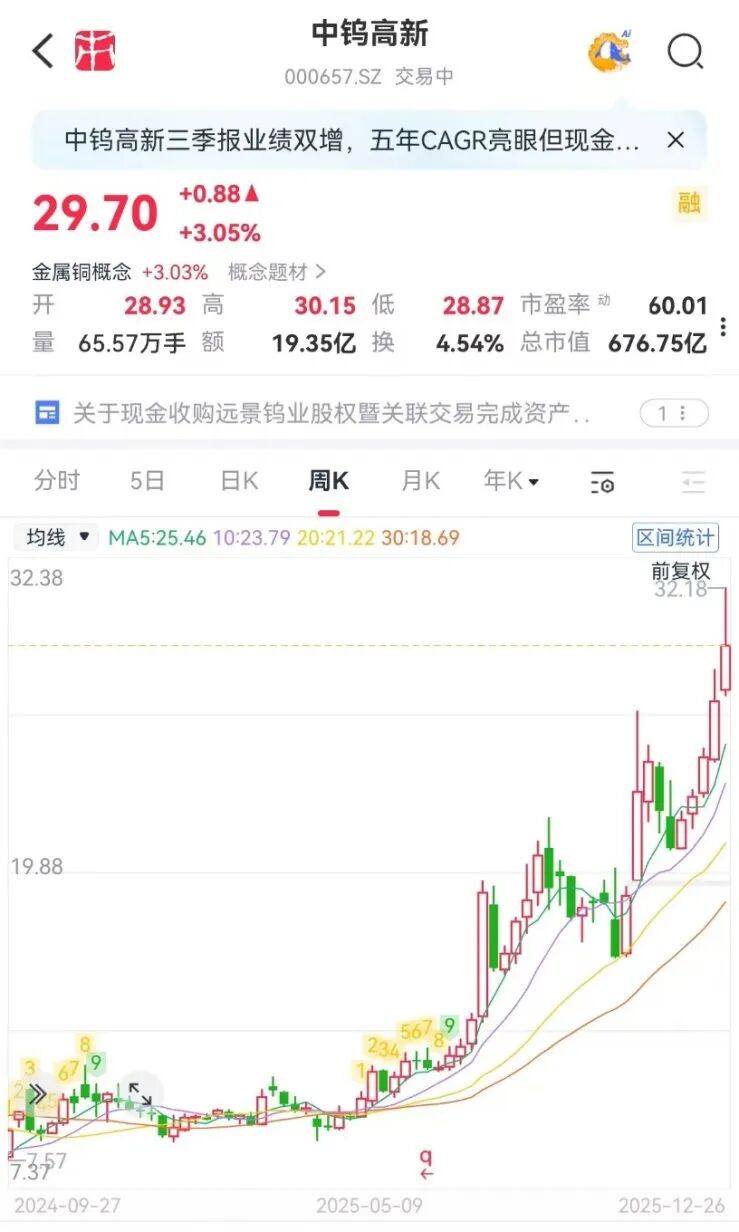 2025年开年以来,中钨高新(000657.SZ)的股价悄然翻了三倍。从年初9元出头,一路震荡上行至12月下旬的30元左右——这在沉寂多年的钨行业里,堪称异动。