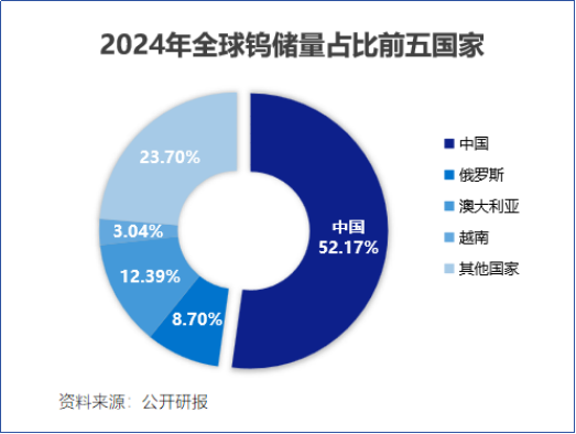 全球钨供应高度集中,我国钨储量占全球52%,产能占比更是高达83%,直接占据主导地位!
