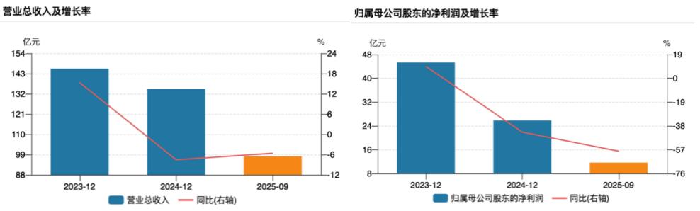 作为公司绝对利润支柱,金赛药业2025 年前三季度实现营业收入 82.13 亿元,同比微增 0.61%,但归母净利润仅 14.21 亿元,同比大幅下滑 49.96%,近乎腰斩。2022年至2024年,金赛药业的归母净利润分别为42.17亿元、45.14亿元、26.78亿元。