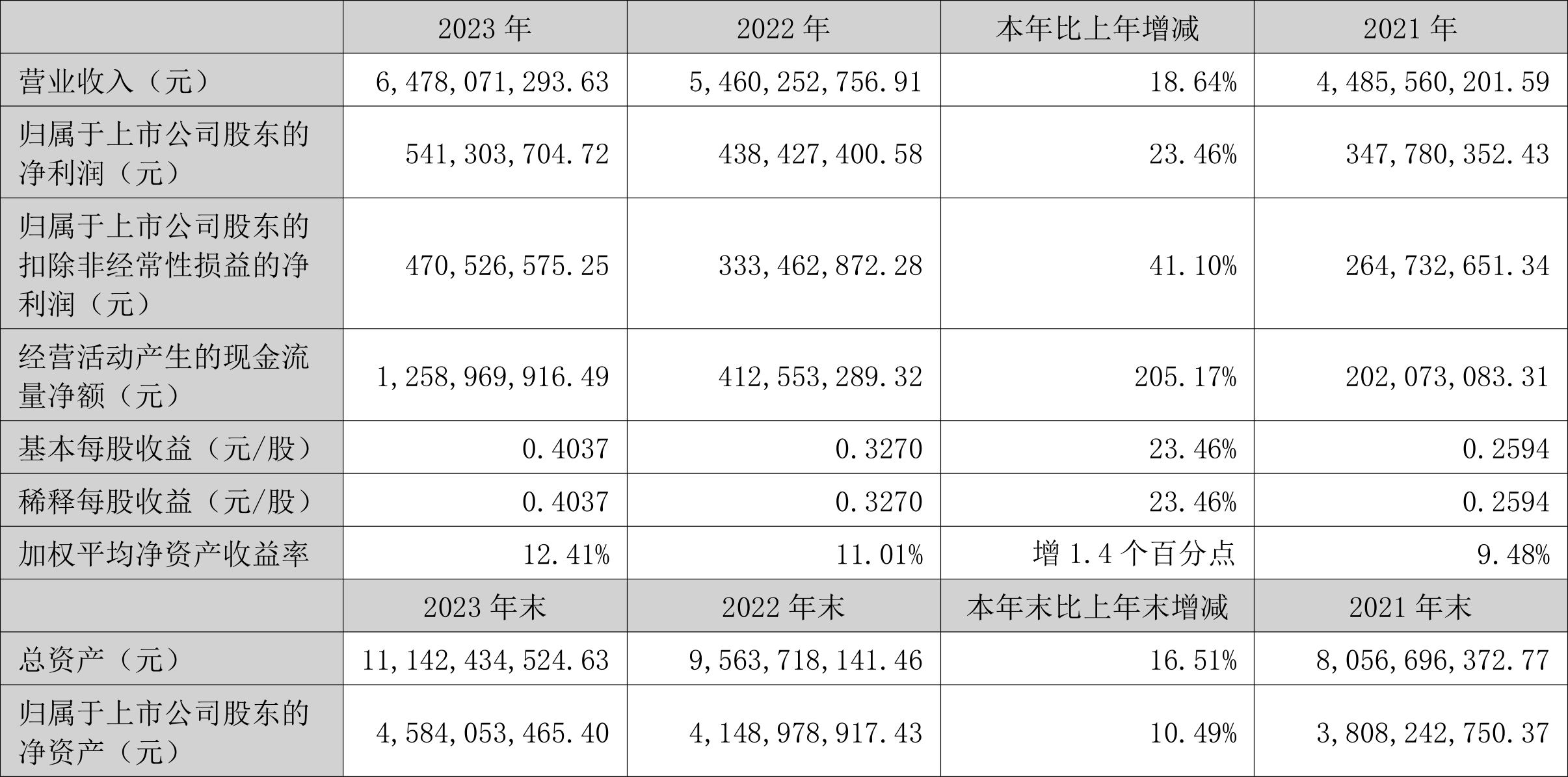 数据显示,2023年公司加权平均净资产收益率为12.41%,较上年同期增长1.40个百分点;公司2023年投入资本回报率为10.88%,较上年同期增长0.78个百分点。