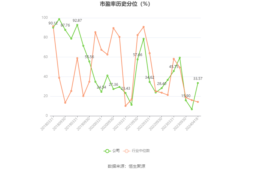 市盈率为负时,不显示当期分位数,会导致折线图中断。