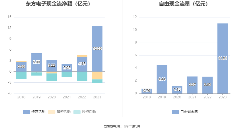 进一步统计发现,2023年公司自由现金流为11.01亿元,相比上年同期增长315.37%。