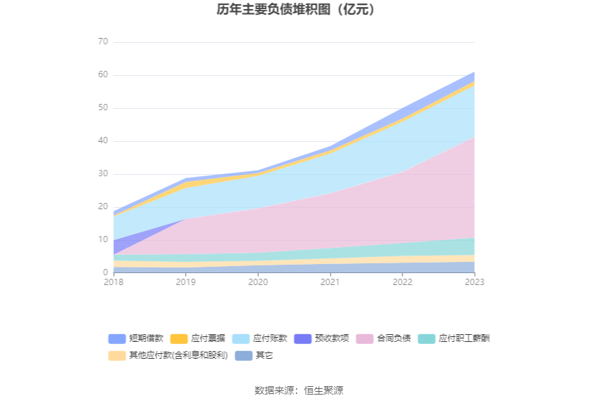 负债重大变化方面,截至2023年年末,公司合同负债较上年末增加42.14%,占公司总资产比重上升4.96个百分点;应付职工薪酬较上年末增加32.24%,占公司总资产比重上升0.55个百分点;应付票据较上年末增加45.19%,占公司总资产比重上升0.24个百分点;应付账款较上年末增加2.36%,占公司总资产比重下降1.92个百分点。