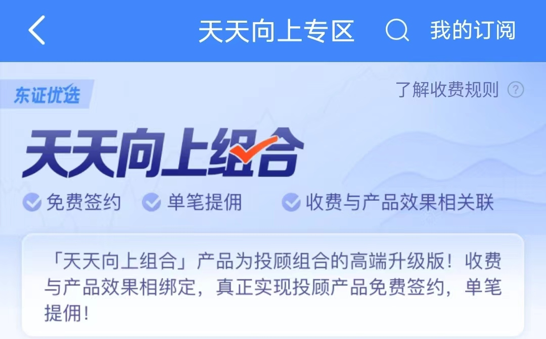 其中,以“免费签约,单笔提佣”为特色的“天天向上”组合产品已然成为服务广大客户的有力工具。天天向上产品自发布以来,受到客户的高度认可,产品规模稳步增长,始终秉持优中择优为投资者负责的宗旨,积极践行高质量发展。