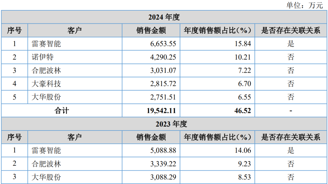 报告期内,公司向前五大客户的销售金额分别为15,567.35万元、16,913.22万元和19,542.11万元,占公司当年营业收入的比例分别为54.21%、46.73%和46.52%。报告期内,公司不存在向单个客户销售的比例超过当期营业收入50.00%或严重依赖少数客户的情况。