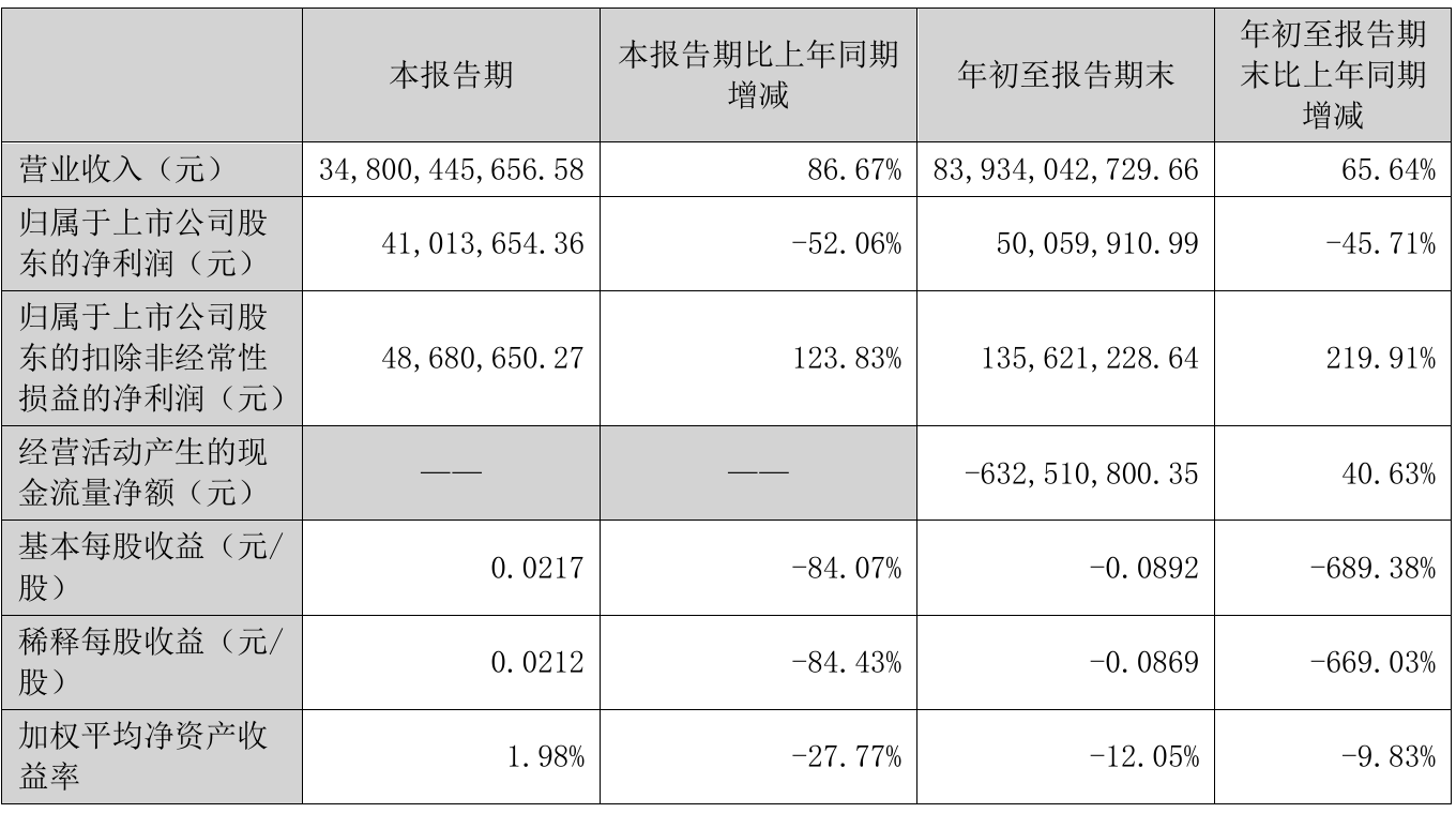 挖贝网10月25日,厦门信达(000701)近日发布2021年前三季度报告,报告期内营业收入83,934,042,729.66元,同比增加65.64%;净利50,059,910.99元,同比净利减少45.71%。