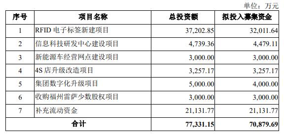 2022年11月19日,厦门信达发布2022年度非公开发行股票预案(修订稿)。本次非公开发行募集资金总额(含发行费用)不超过人民币70879.69万元(含本数),扣除发行费用后的募集资金净额将用于RFID电子标签新建项目、信息科技研发中心建设项目、新能源车经营网点建设项目、4S店升级改造项目、集团数字化升级项目、收购福州雷萨少数股权项目、补充流动资金。