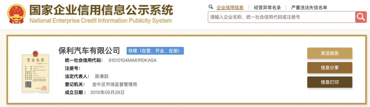 乐居财经刘治颖 2月13日,厦门信达国贸汽车集团股份有限公司(以下简称:厦门信达国贸汽车)新增对外投资企业保利汽车有限公司(以下简称:保利汽车),投资比例为55%。