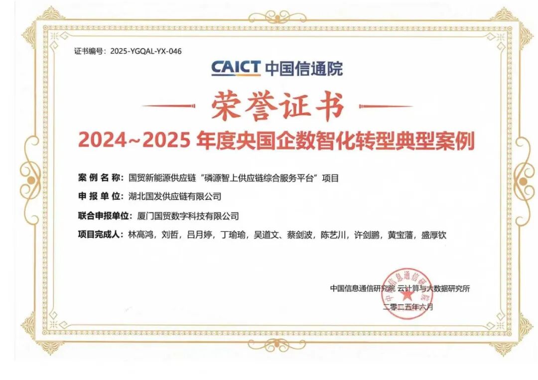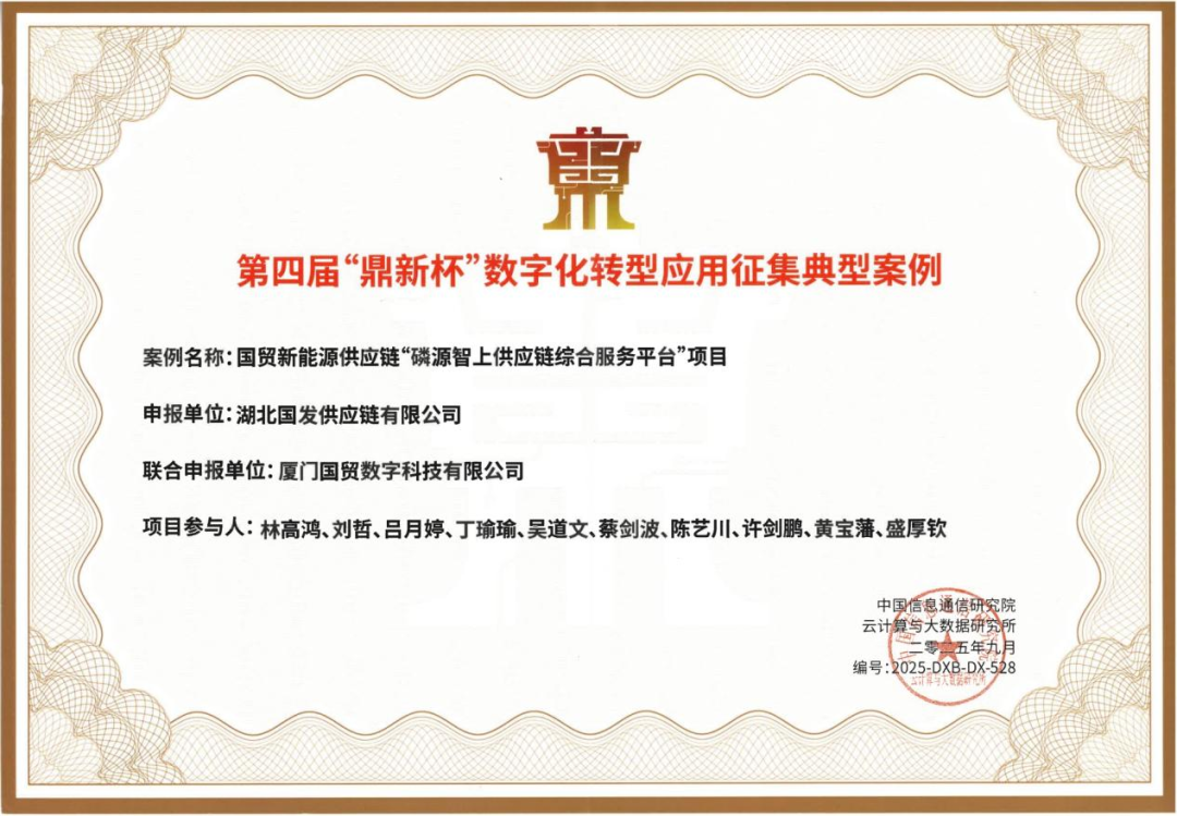 2025年,数智科技板块主导建设的新能源供应链“磷源智上供应链综合服务平台”项目,凭借在产业数字化转型领域的创新实践与标杆价值,入围中国信通院《2024-2025年度央国企数智化转型典型案例》与第四届“鼎新杯”数字化转型应用征集典型案例,彰显了平台在技术创新、场景落地与行业赋能方面的核心竞争力。