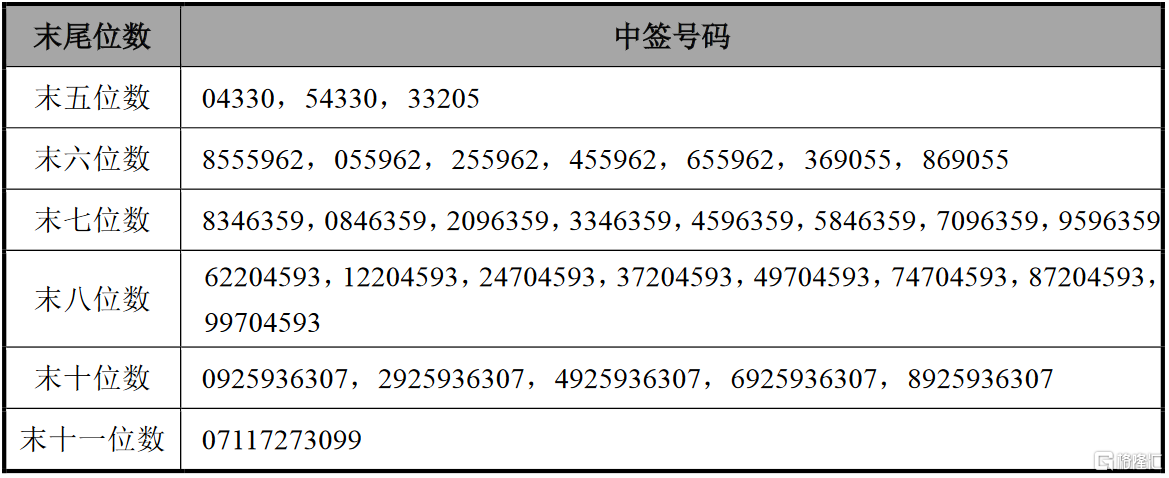 凡参与恒逸转2网上申购的投资者持有的申购配号尾数与上述号码相同的,则为中签号码。中签号码共有454,656个,每个中签号码只能认购10张(1000元)恒逸转2。