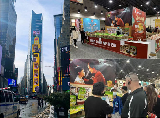 进入2022年,中国农历年除夕夜,南方黑芝麻以纽约时代广场大屏广告春节倒计时、向全世界人民拜年的方式,跨出了国产经典品牌出海的重要一步,与此同时,其在代理伙伴的协助下参加了燃爆半个洛杉矶华裔圈的北美第四届中国新潮食品展销会,其经典“母子图”形象独树一帜,唤起了在美华人的童年回忆,也引得现场观众围观购买。当前国产品牌出海的大浪潮下,如南方黑芝麻一类的企业,的确正在不断彰显了中国品牌实力,也有望为其产品的海外推广再添助力。