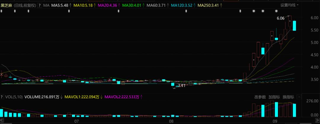 但9月8日,黑芝麻马上大变脸,低开低走封死跌停板。
