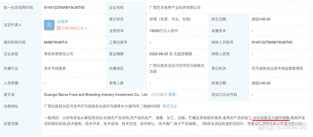 消息显示,8月25日黑芝麻参股子公司“巴马食养”成立,黑芝麻占注册资本35%,该公司业务经营范围涉及光伏设备及元器件销售等。不过8月29日,黑芝麻表示自身不参与巴马食养具体的经营管理,并透露前期的主营业务为广西巴马当地的农产品加工与销售。