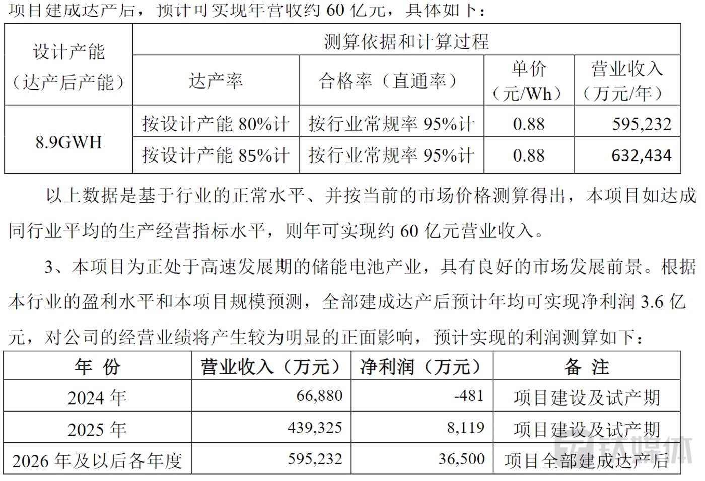 具体来看,本次项目建设的主要内容包括厂房及仓库改建、电力供应系统扩容改造、方形磷酸铁锂生产线采购及安装、控制系统采购及安装、环境保护设施建设等。该生产基地将建设三条方形磷酸铁锂电池生产线,建成达产后将形成年产8.9GWH的储能电池的产能规模。