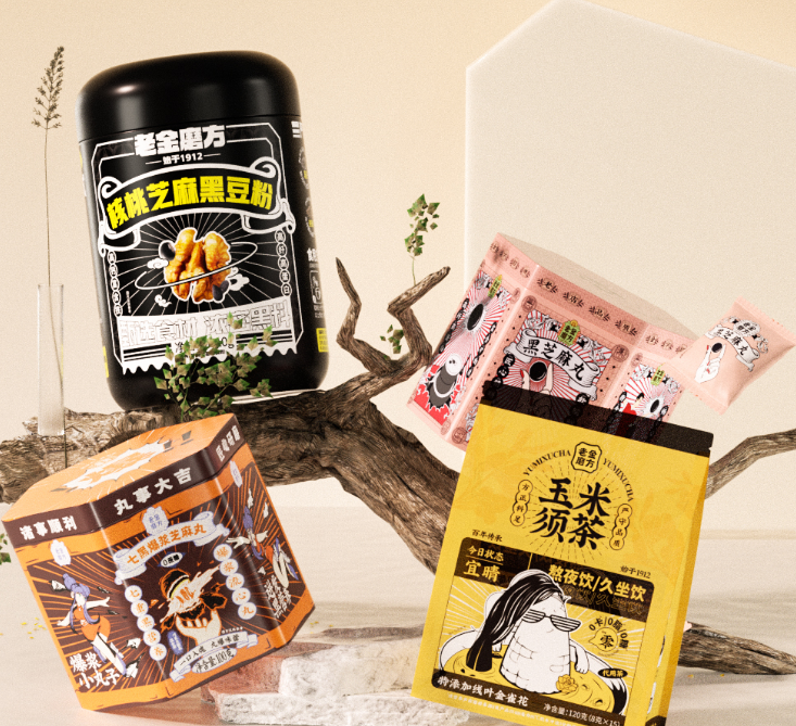 其热门单品老金磨方黑芝麻丸,以江西黑芝麻、东北黑豆、黑龙江黑米、青海黑果枸杞、新疆桑葚等五种黑色食材制成。从2019年起至2022年,连续4年获天猫黑芝麻丸销量第一。