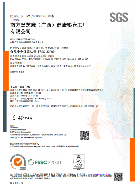 对消费者而言,这意味着购买的每一份 南方黑芝麻 产品,都有了更加严格和国际化的食品安全保障。