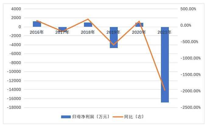 进入2016年后一直到2021年,西安饮食的归母净利润便呈现增一年、减一年趋势,并且同比降幅由一开始的三位数进一步扩大至2021年的四位数,并于2021年再次由盈转亏,当年归母净亏损达到1.69亿元。与此同时,该公司同年度区间营收的增长状况也处于忽增忽减、波动不定态势。