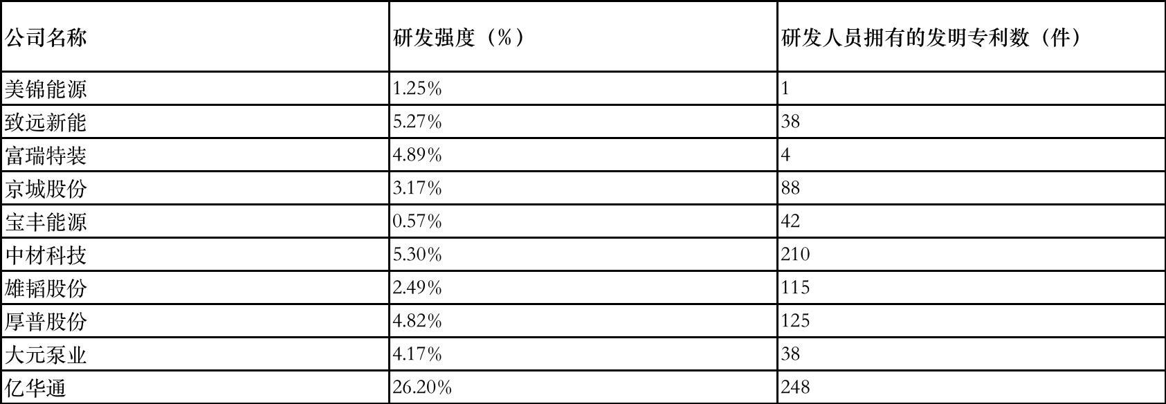 表1 “氢能源”赛道企业研发强度和发明专利数