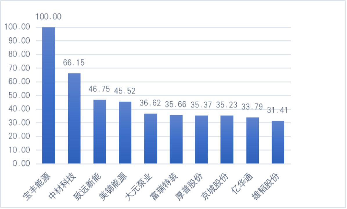 图1 “氢能源”赛道企业品牌优势值(100分制)