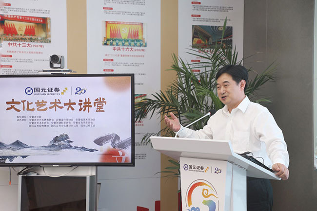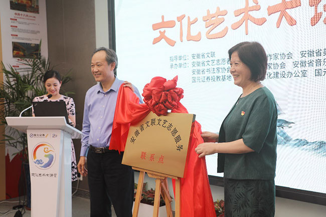 金融建设,文艺赋能。为推动我省文艺工作向投资者教育领域延伸,省文联与国元证券充分发挥各自平台、师资等优势并携手于7月9日下午在国元证券投资者教育基地举办“安徽省文联文艺志愿服务联系点”授牌仪式暨“国元证券文化艺术大讲堂”首讲活动。