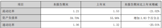 截至今年6月30日,国元证券资产总额1006.13亿元,同比增长10.93%;负债总额692.54亿元,同比增长15.74%;资产负债率为59.79%,较上年同期增加3.83个百分点;流动比率为1.21%,较上年同期减少21.02个百分点;速动比率为1.06%,较上年同期减少20.01个百分点。