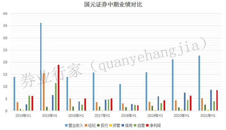 2021年中报显示,国元证券当期营收为22.75亿元,同比增长7.58%——这一数值未达到行业平均水平,并且也是近三年最低中期增速;归母净利润为8.46亿元,同比增长36.99%。