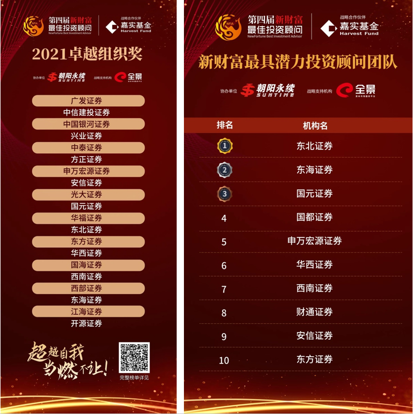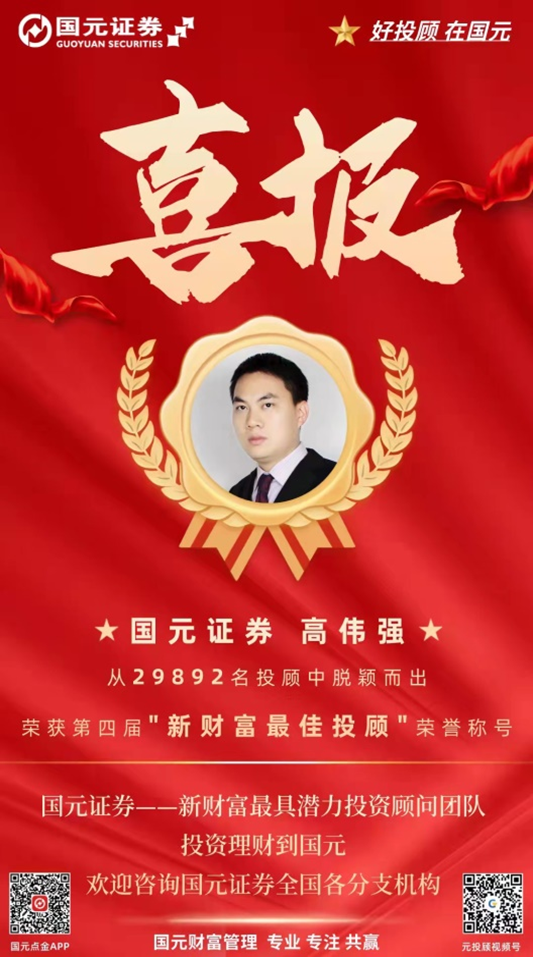 近日,第四届新财富最佳投资顾问评选结果最终出炉,本次评选中,国元证券喜获“新财富最佳投资顾问卓越组织奖”、“新财富最具潜力投资顾问团队”第三名。同时,6人入围“最佳股票投资收益奖”(top300),5人入围“最佳资产配置奖”(TOP200),来自芜湖黄山西路营业部的高伟强老师更是荣获“第四届新财富最佳投资顾问”。