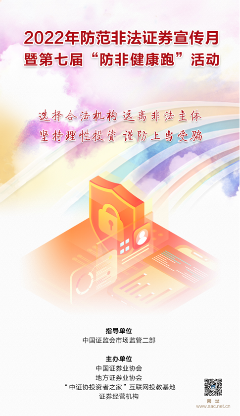 为贯彻落实《关于依法从严打击证券违法活动的意见》文件精神,深化投资者教育,进一步做好防范非法证券期货活动宣传工作,帮助投资者树立正确投资理念,远离非法证券期货活动,根据中国证券业协会《关于开展2022年防范非法证券系列宣传活动的通知》(中证协发[2022]98号)、《关于2022年证券经营机构参与防范非法证券宣传月活动安排的通知》(中证协发[2022]97号),安徽证监局《关于开展安徽辖区2022年防范非法证券期货宣传月活动的通知》(皖证监函〔2022〕86号)要求,在中国证券业协会和安徽证监局统一部署下,国元证券正在开展以“选择合法机构,远离非法主体,坚持理性投资,谨防上当受骗”为主题的2022年防范非法证券期货宣传月活动。
