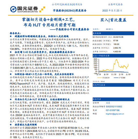 该研究报告从“定增夯实竞争力,股权激励彰显成长信心”“切割设备+耗材+工艺三位一体布局,光伏业务快速增长”“布局切片代工和HJT专用硅片,打造业绩新增长点”等角度出发,挖掘了宇晶股份的投资价值。