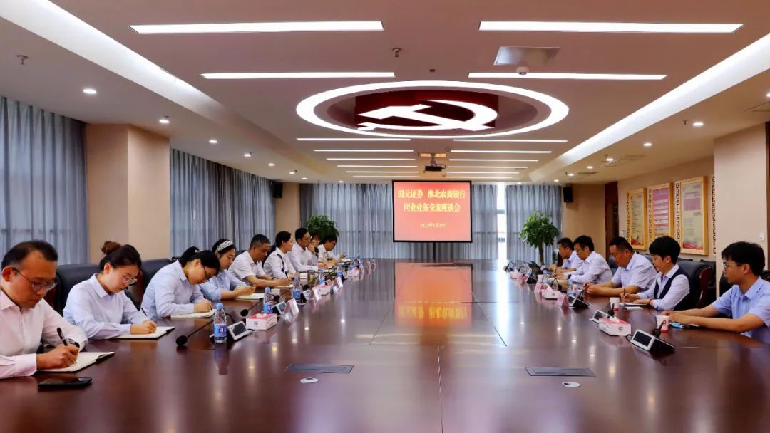 5月27日,国元证券资管部总经理黄本涛、国元证券淮北营业部总经理李珍一行到访我行,双方就进一步加强银证合作等内容进行了交流座谈,行领导王海燕、张长青、朱雪童及相关部门、支行负责人参加座谈。