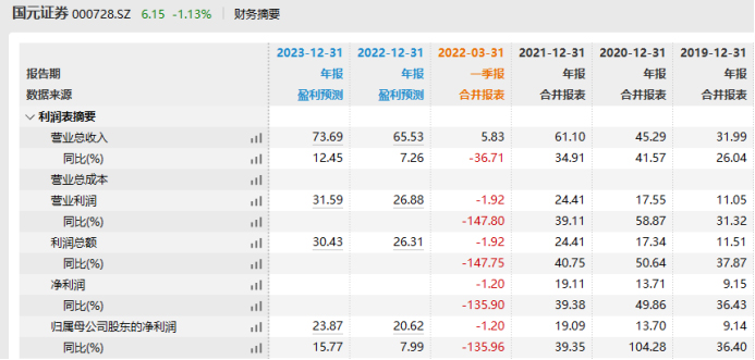 值得关注的是,业绩已连续3年实现增长的国元证券,今年一季度,营收出现了较大程度的下滑,同时出现了亏损。